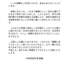 麒麟は、伊勢市馬瀬町にある隠れ家のような中国料理店です。