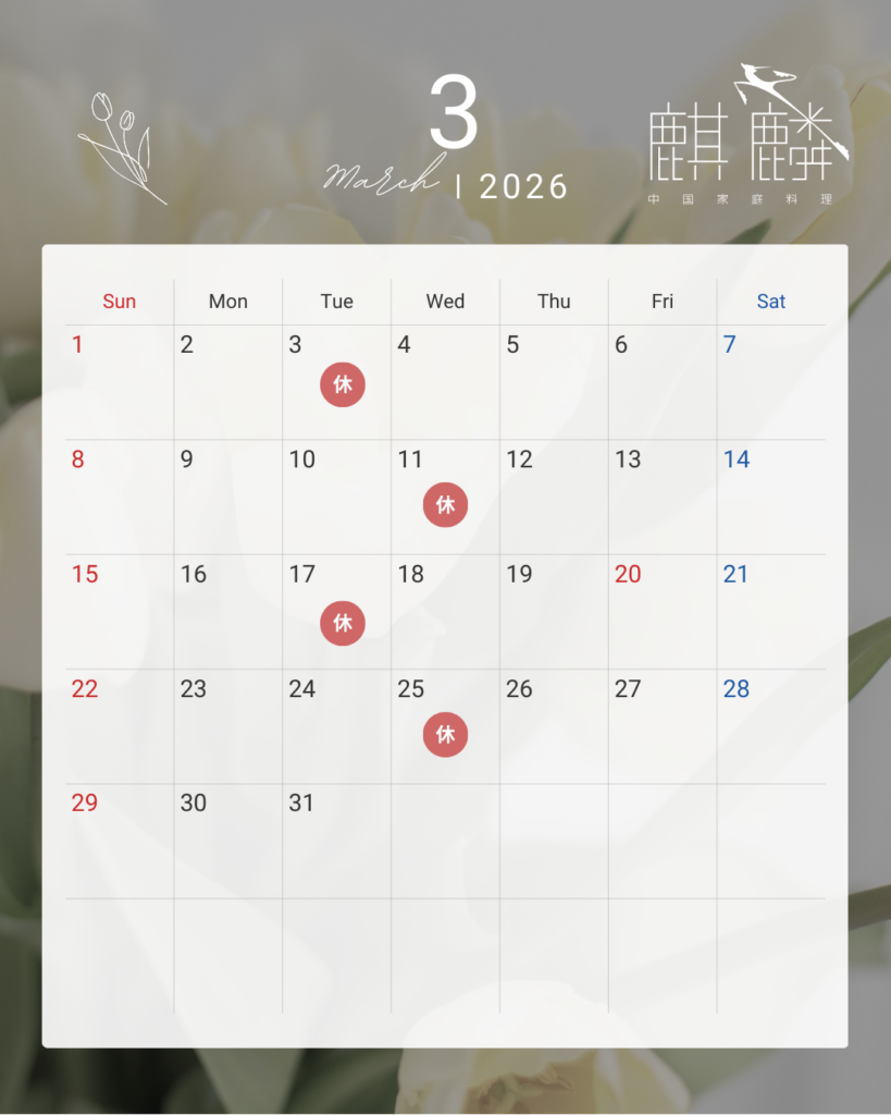 ※3日と17日は家族の予定のため、臨時でお休みをいただきます。